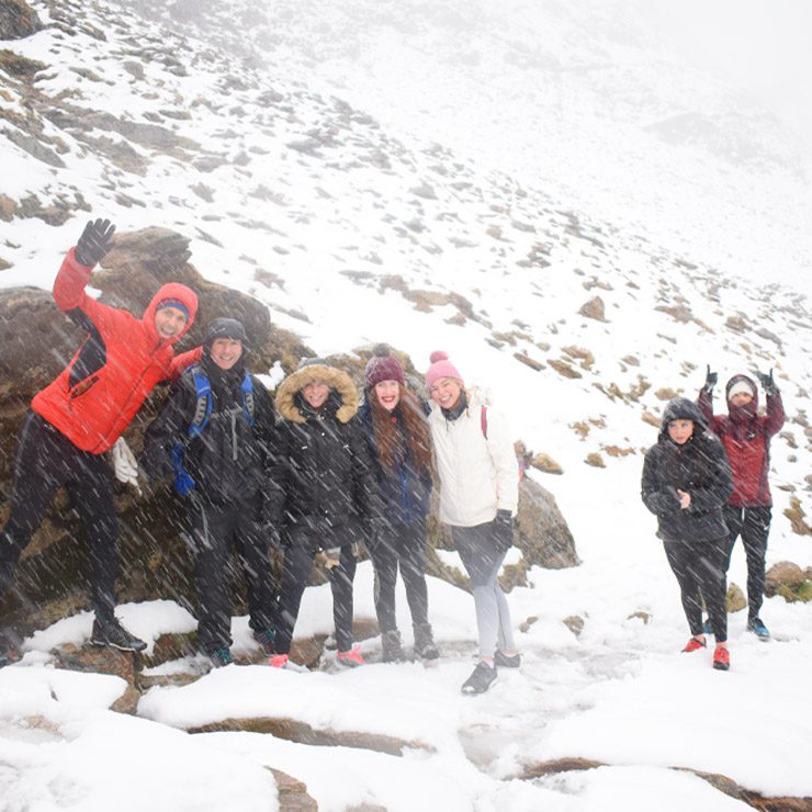 “The first time we climbed Snowdon was absolutely terrifying, we were in some sort of blizzard! I had the most unsuitable outfit on ever (typical me) and we only got half way up and had to turn around before we were going to need rescuing ๐ญ.”